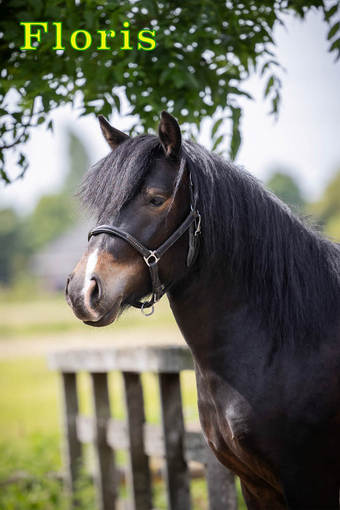 Floris is een donkerbruine ruin, hij is bij ons geboren op 29-3-2019. Zijn moeder is een shetland merrie die bij de vorige eigenaren stiekem op date was gegaan met een haflo arabier hengst. Een beetje gekke combinaite, maar gelukkig een super leuke uitkomst. Floris is 1.26 hoog.