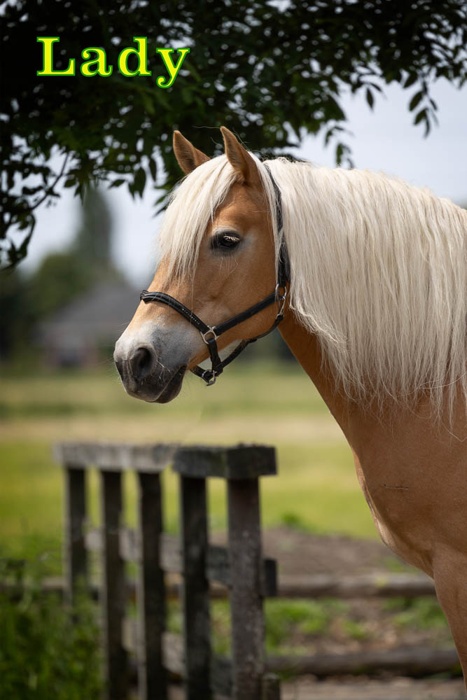 Lady is een mooie haflinger merrie van 1.43m zij is geboren op 4-3-2009.